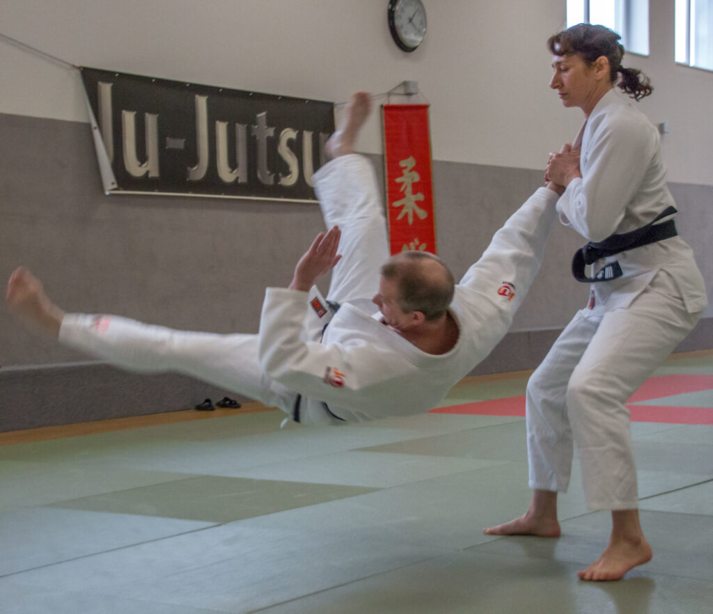 Ju-Jutsu beinhaltet mehr, als der Name allein erkennen lässt. „Ju“ bedeutet „sanft“, d.h. ausweichen, anpassen, nachgeben. „Jutsu“ bedeutet „Kunst oder Kunstgriff“